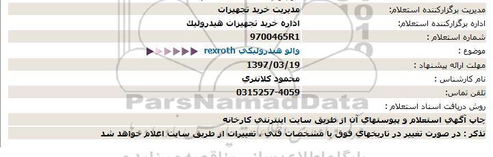 اداره برگزارکننده استعلام: اداره خرید تجهیزات هیدرولیک