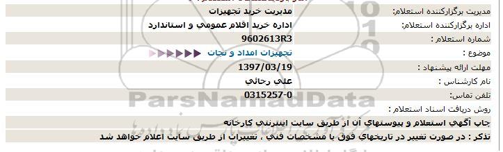 اداره برگزارکننده استعلام: اداره خرید اقلام عمومی و استاندارد