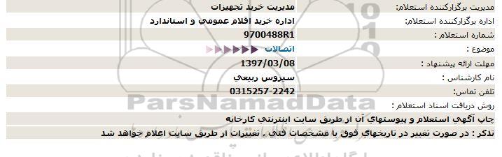 اداره برگزارکننده استعلام: اداره خرید اقلام عمومی و استاندارد