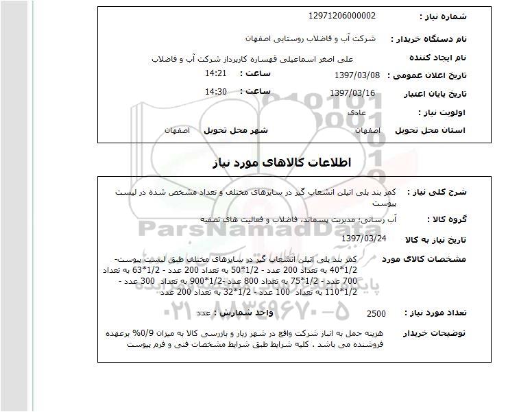 نام دستگاه خریدار: شرکت آب و فاضلاب استان اصفهان