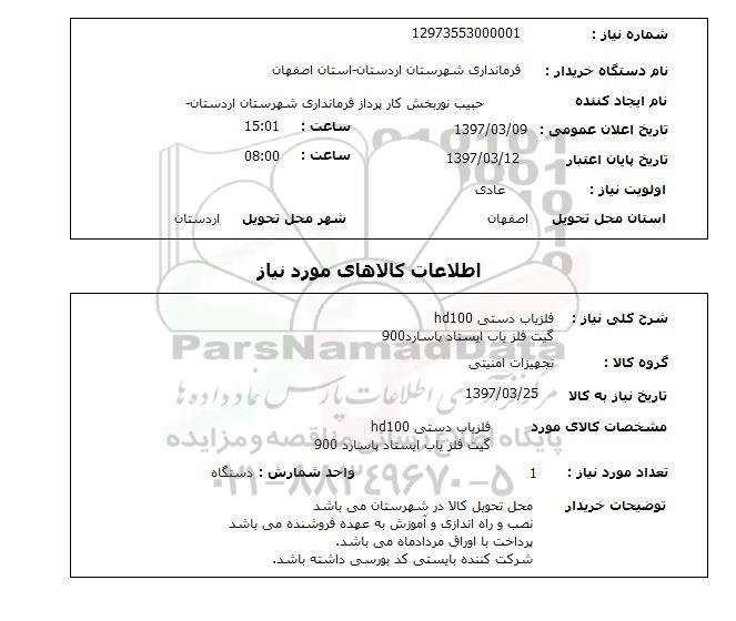نام دستگاه خریدار: فرمانداری شهرستان اردستان - استان اصفهان