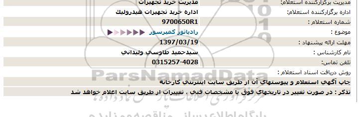 اداره برگزارکننده استعلام: اداره خرید تجهیزات هیدرولیک