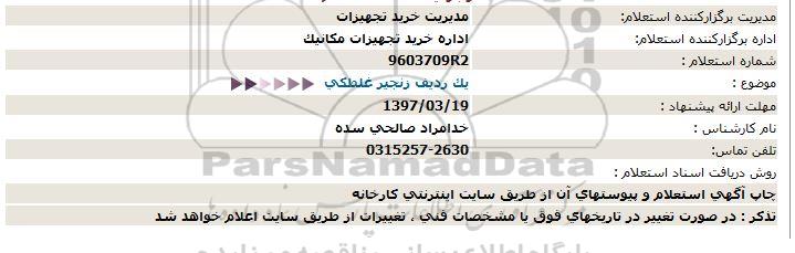 اداره برگزارکننده استعلام: اداره خرید تجهیزات مکانیک