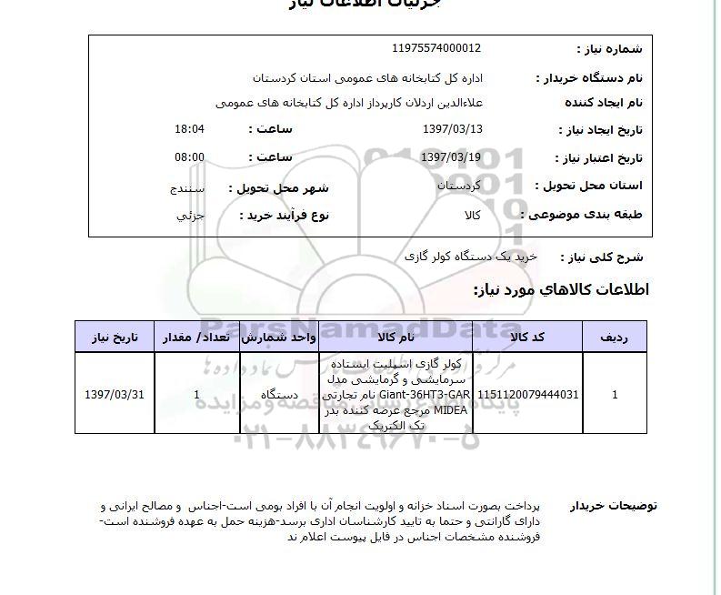 نام دستگاه خریدار: اداره کل کتابخانه های عمومی استان کردستان