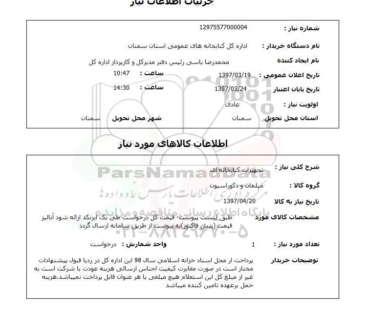 نام دستگاه خریدار: اداره کل کتابخانه های عمومی استان سمنان