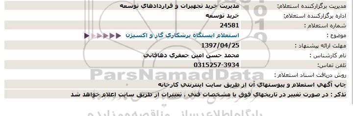 موضوع : استعلام ایستگاه برشکاری گاز و اکسیژن