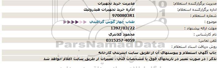 اداره برگزارکننده استعلام اداره خرید تجهیزات هیدرولیک