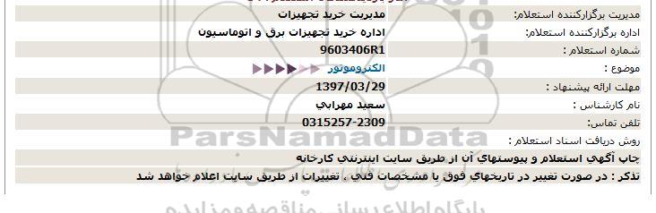 اداره برگزارکننده استعلام: اداره خرید تجهیزات برق و اتوماسیون