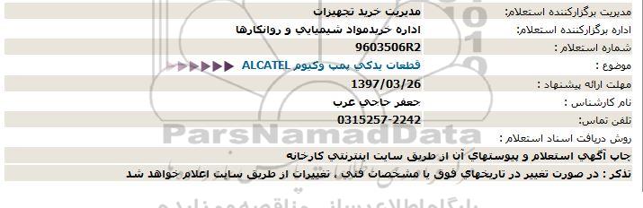 استعلام قطعات یدکی پمپ وکیوم , استعلام ، استعلام قطعات یدکی پمپ وکیوم