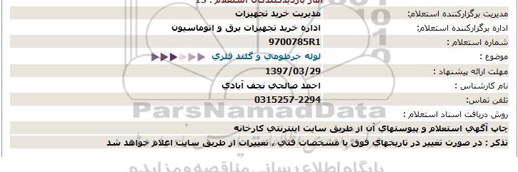 اداره برگزارکننده استعلام: اداره خرید برق و اتوماسیون