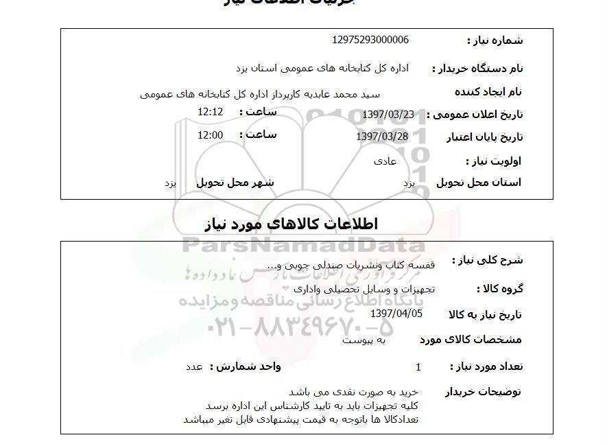 نام دستگاه خریدار: اداره کل کتابخانه های عمومی استان یزد