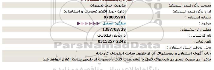 اداره برگزارکننده استعلام: اداره خرید اقلام عمومی و استاندارد