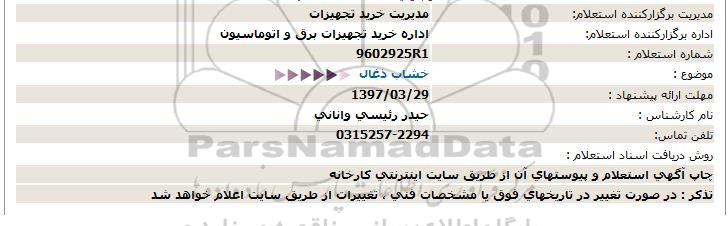 اداره برگزارکننده استعلام: اداره خرید تجهیزات برق و اتوماسیون