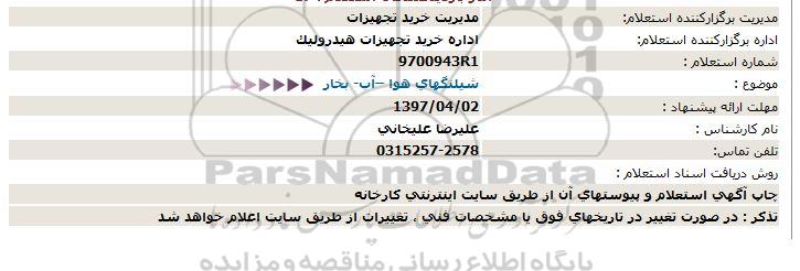 اداره برگزارکننده استعلام: اداره خرید تجهیزات هیدرولیک