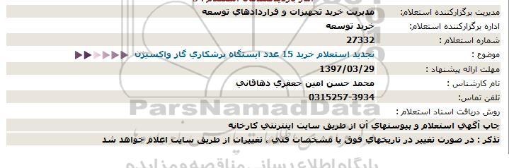 موضوع : تجدید استعلام خرید 15 عدد ایستگاه برشکاری گاز و اکسیژن