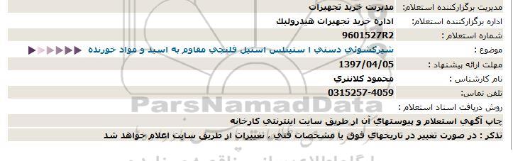 اداره برگزارکننده استعلام: اداره خرید تجهیزات هیدرولیک