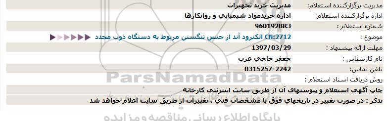 استعلام الکترود آند از جنس تنگستن از کلیه افراد متخصص و شرکتها واجد شرایط دعوت به عمل میآید در مناقصه با کد خبرگزاری پارس نماد: 1182105 شرکت نمایند.