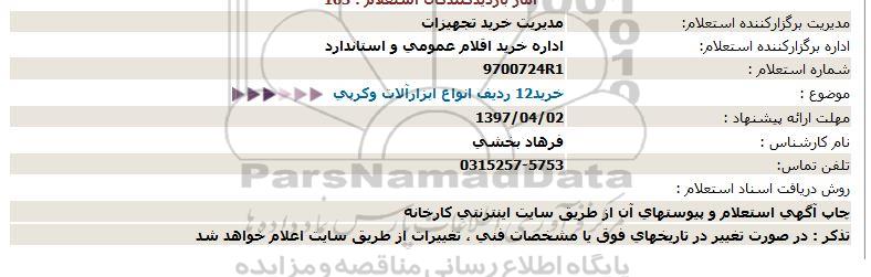 موضوع : خرید12 ردیف انواع ابزارآلات وکرپی