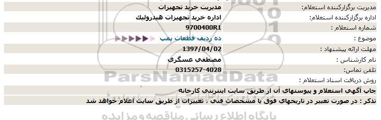 اداره برگزارکننده استعلام: اداره خريد تجهيزات هيدرولیک