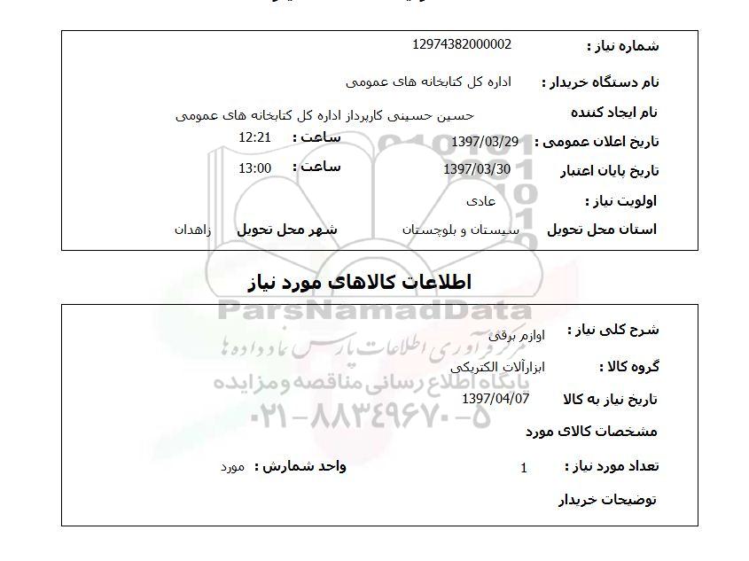 نام دستگاه خریدار: اداره کل کتابخانه های عمومی