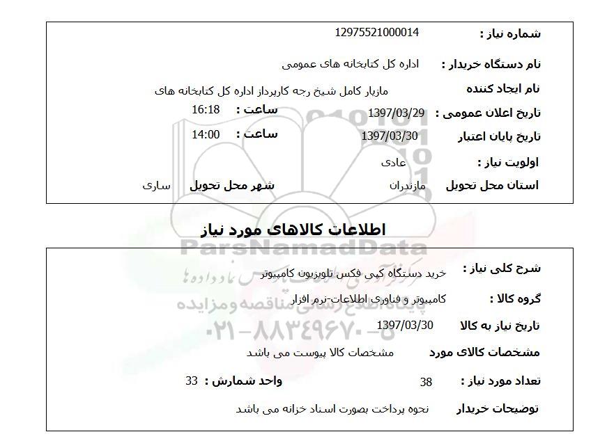 تاریخ اعتبار نیاز: 97.003.30 ساعت 14
