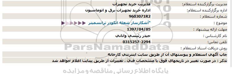 اداره برگزارکننده استعلام: اداره خرید تجهیزات برق و اتوماسیون