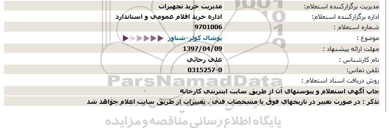 اداره برگزارکننده استعلام: اداره خرید اقلام عمومی و استاندارد