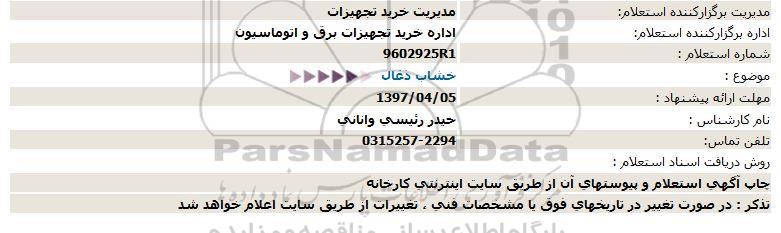 اداره برگزارکننده استعلام: اداره خرید تجهیزات برق و اتوماسیون
