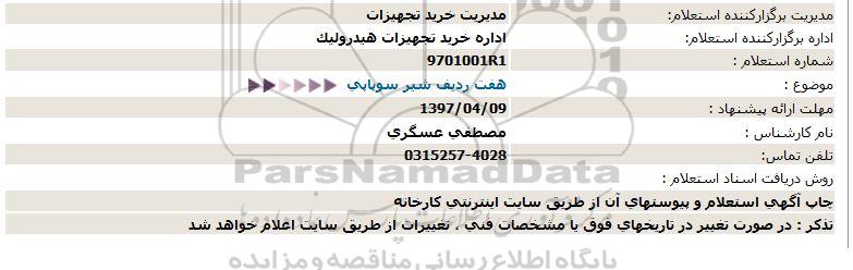 استعلام هفت ردیف شیر سوپاپی , استعلام, استعلام هفت ردیف شیر سوپاپی