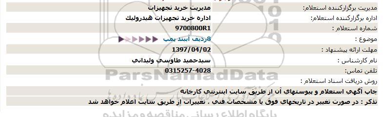 استعلام 8 ردیف آببند پمپ, استعلام ، استعلام 8 ردیف آببند پمپ