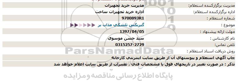 اداره برگزارکننده استعلام:اداره خرید تجهیزات ساخت
