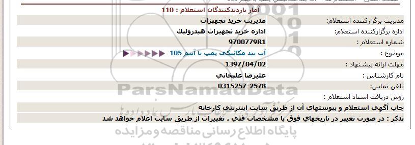 اداره برگزارکننده استعلام: اداره خرید تجهیزات هیدرولیک