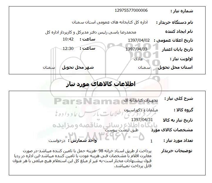 نام دستگاه خریدار:اداره کل کتابخانه های عمومی استان سمنان