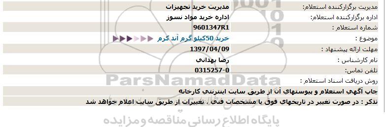 اداره برگزارکننده استعلام: اداره خرید مواد نسوز