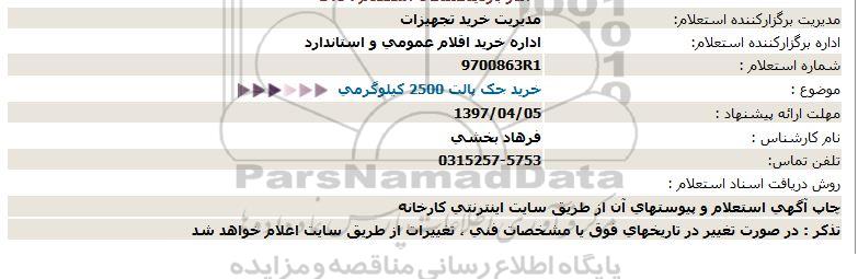 اداره برگزارکننده استعلام:اداره خرید اقلام عمومی و استاندارد