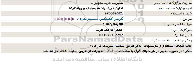 اداره برگزارکننده استعلام: اداره خریدمواد شیمیایی و روانكارها
