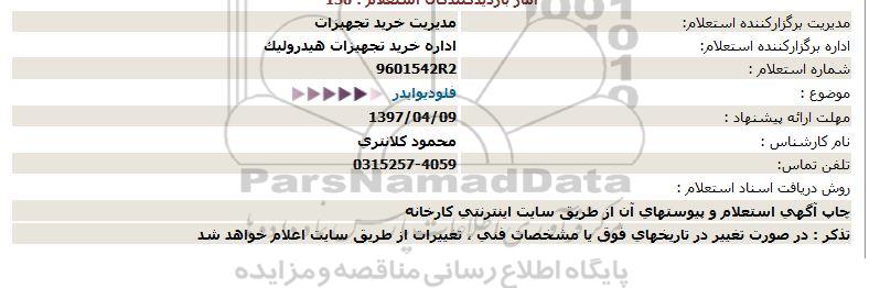 اداره برگزارکننده استعلام: اداره خرید تجهیزات هیدرولیک