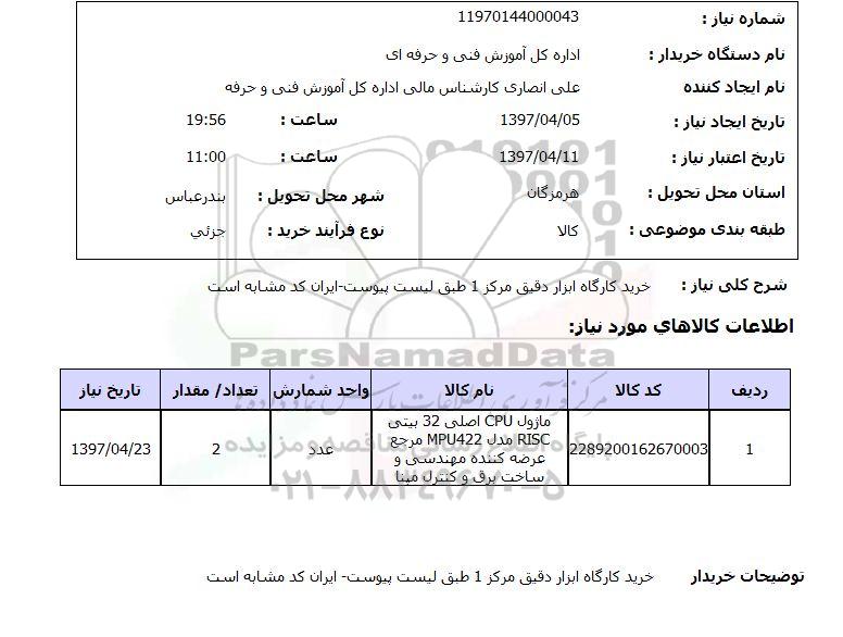 توضیحات خریدار      خرید کارگاه ابزار دقیق مرکز 1 طبق لیست پیوست- ایران کد مشابه است