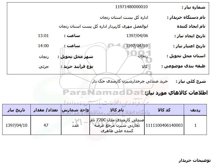 نام دستگاه خریدار :    اداره کل پست استان زنجان