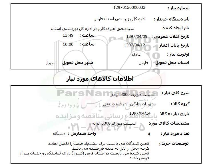 نام دستگاه خریدار: اداره کل بهزیستی استان فارس