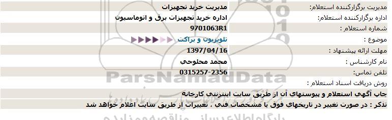 استعلام تلویزیون و براكت , استعلام , استعلام تلویزیون و براكت