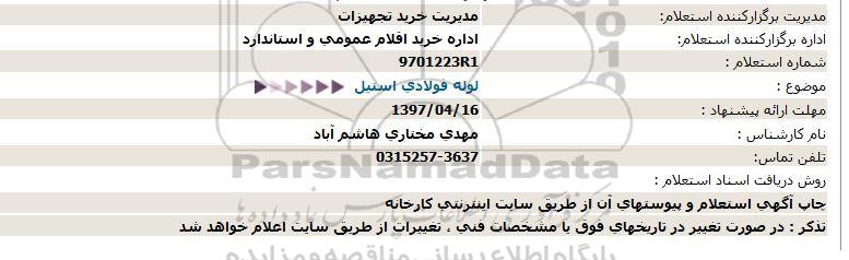 اداره برگزارکننده استعلام: اداره خرید اقلام عمومی و استاندارد