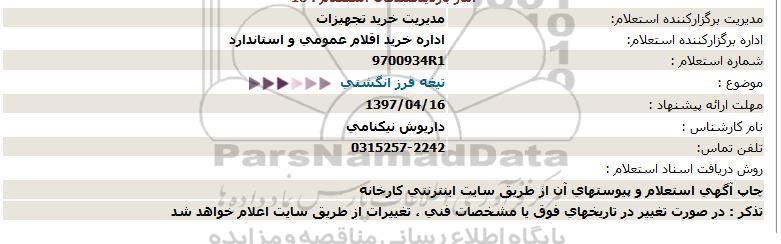 اداره برگزارکننده استعلام: اداره خرید اقلام عمومی و استاندارد