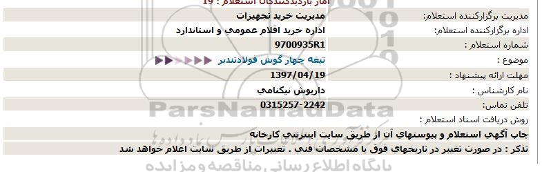 اداره برگزارکننده استعلام: اداره خرید اقلام عمومی و استاندارد