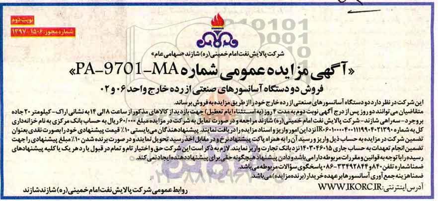 آگهی مزایده عمومی شماره pa-9701-ma نوبت دوم