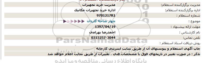 اداره برگزارکننده استعلام: اداره خرید تجهیزات مكانیك