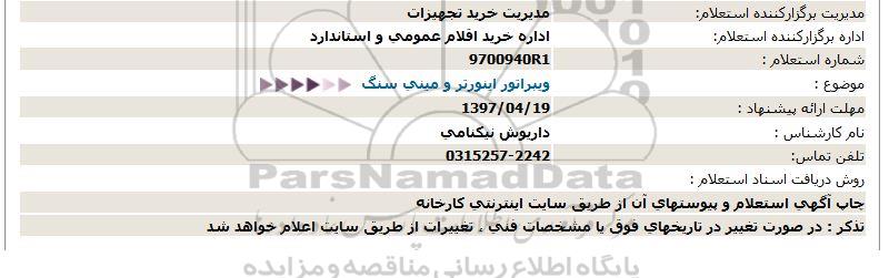 اداره برگزارکننده استعلام: اداره خرید اقلام عمومی و استاندارد