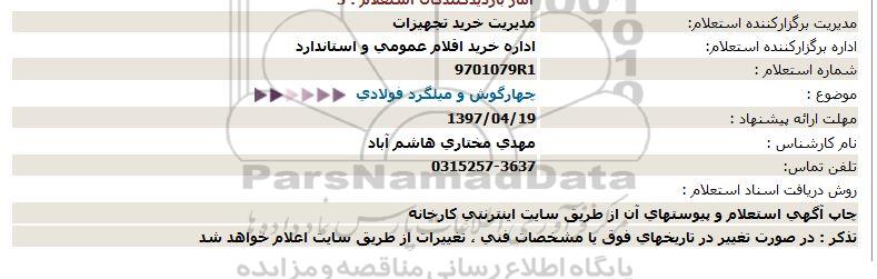اداره برگزارکننده استعلام:اداره خرید اقلام عمومی و استاندارد