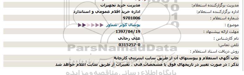 اداره برگزارکننده استعلام: اداره خرید اقلام عمومی و استاندارد
