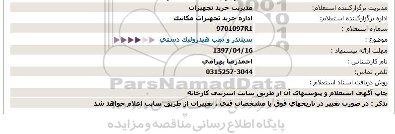 اداره برگزارکننده استعلام: اداره خرید تجهیزات مکانیک